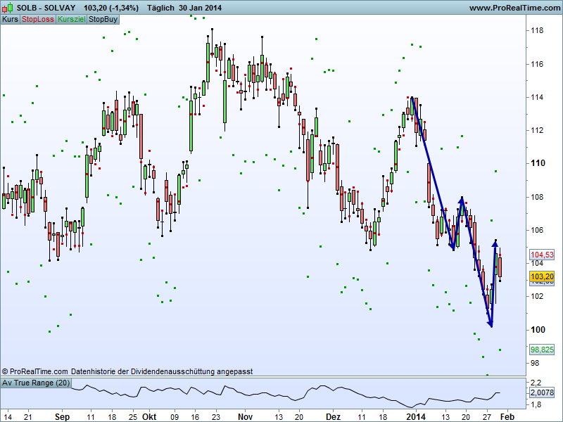 Trotz lower Low gefällt mir Gemalto ganz gut. Und Solvay ist zwar nicht optimal günstig zu haben, aber dafür umso schöner im Abwärtstrend gefangen.Der Autor ist in den besprochenen Werten zumeist selbst investiert. Traden auf eigene Gefahr, Signale sind aktuell großteils experimentell zwecks Challenge "In 30 Tagen zur Trading Strategie".