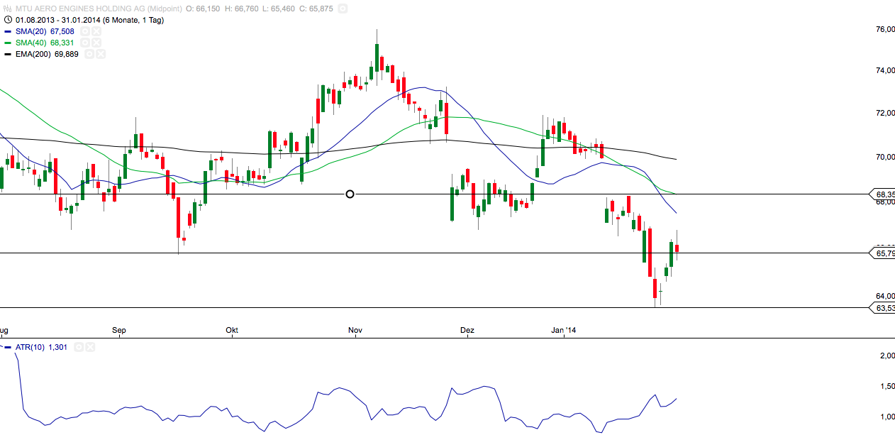 (0,8 wären besser, aber wenn der Abstand mal mehr als 1xATR[10] beträgt dann schaue ich mir die Aktie gar nicht mehr genauer an.)