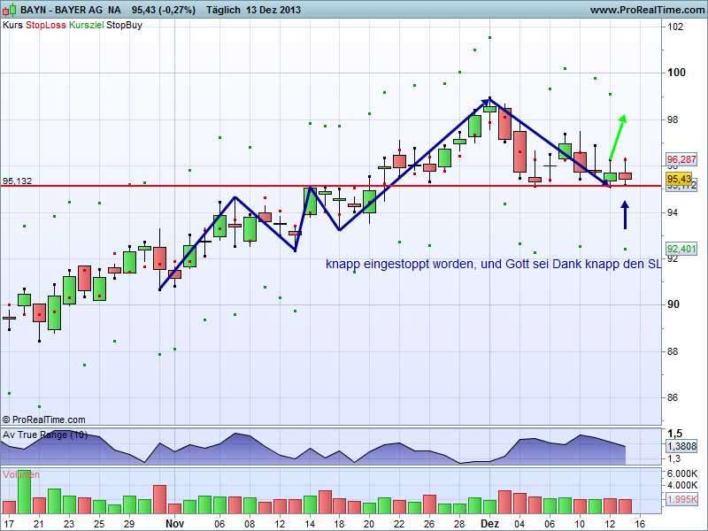 ich bin heute mit Vivendi (Chart hat Hintman schon gepostet) short gegangen, und ich versuche auch Bayer long zu nehmen. Bin bei Beiden heute eingestoppt worden, sind aber noch nicht wirklich vom Fleck gekommen.