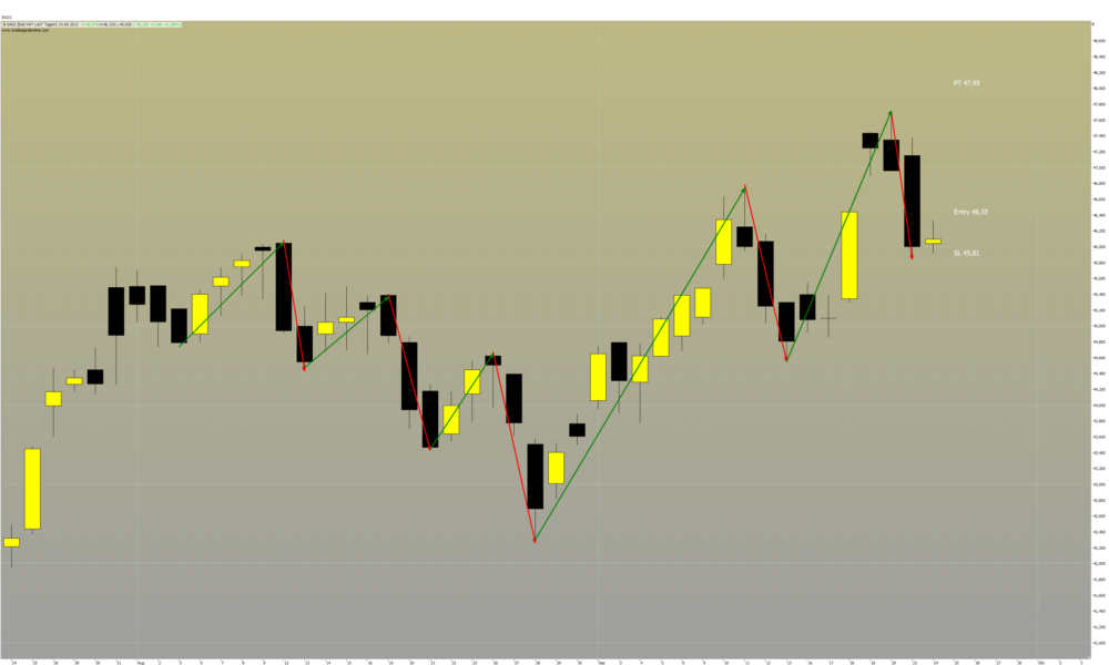 Nachdem Hintman Gemalto als Short gefunden hatte, bin ich heute doch in den Markt. Bouygues war ein Reinfall. Gemalto und Valeo sind erst einmal im Plus. Conti habe ich auch noch, aber die liefern heute eher ein Short-Signal. Zum Drehen ist mir das aber zu schwach, ich habe den Stop auf Break Even nachgezogen.