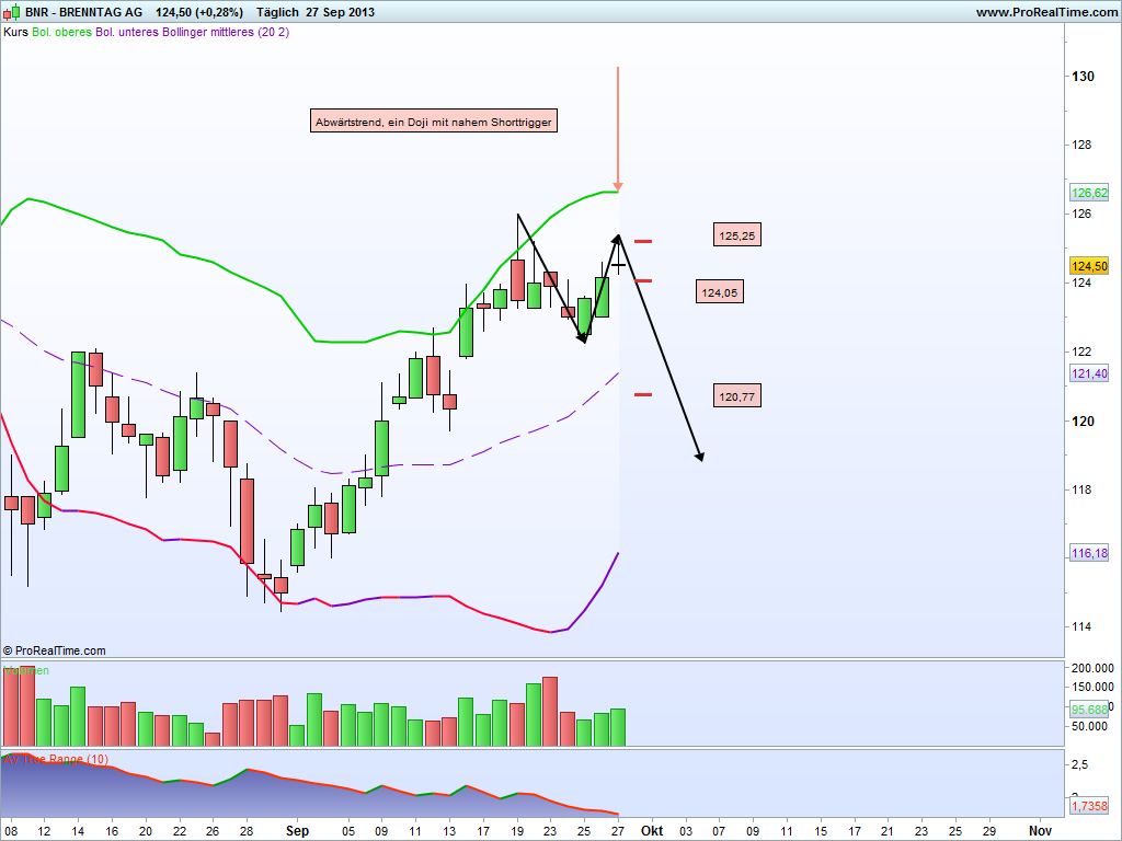 Brenntag: Kerze vom Freitag ist ein Doji (bei WHS leider wieder etwas