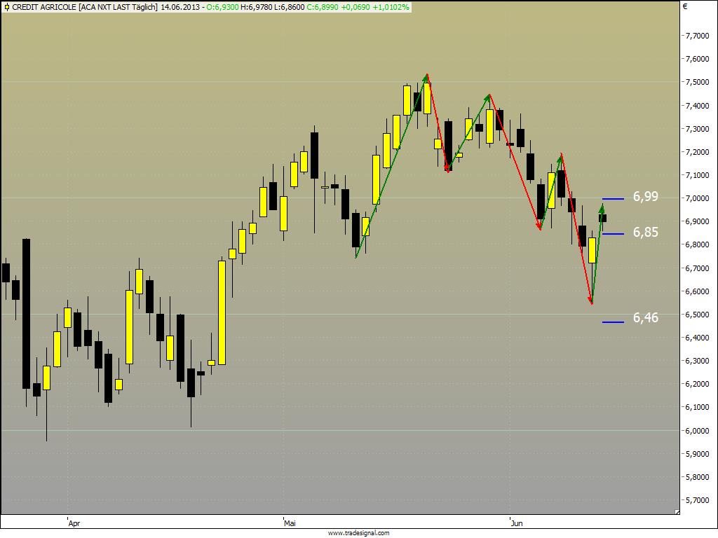 Fängt ja schön an die Woche mit Credit Agricole und Merck, wenigstens ist ALU auf dem Weg zum Kursziel. Ich nehm die gleichen Signale wie M&BDer Autor ist in den besprochenen Werten zumeist selbst investiert. Traden auf eigene Gefahr, Signale sind aktuell großteils experimentell zwecks Challenge "In 30 Tagen zur Trading Strategie".