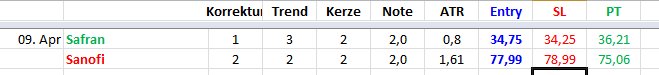 Morgen könnte ich auch genauso gut nichts machen, denn sowohl Safran als auch Sanofi-Aventis sind sehr grenzwertig. Aber Augen zu und durch, die schönsten Signale gehen ohnehin eher selten nach Plan ;)