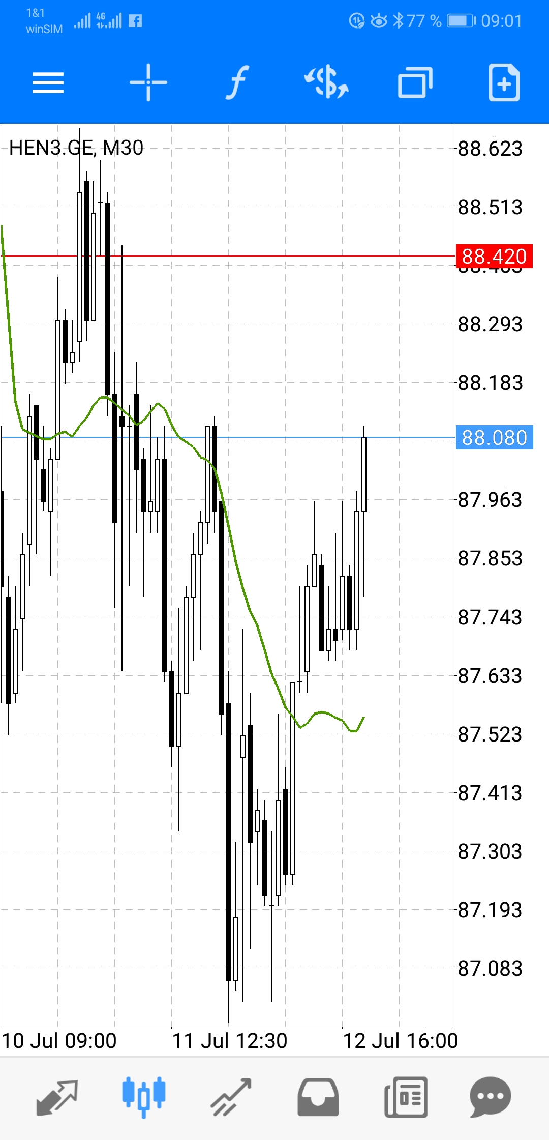 Da bräuchte ich jetzt nochmal ein bisschen Nachhilfe. Ich schaue mir grundsätzlich die XETRA last Kurse bei Guidants an und lege danach bei SB/SL, T und SL. SB/SL 2 cent über/unter Tageshoch/Tagestief. Target 2 cent über/unter dem letzten Widerstand im Tages-Kerzenchart (das ist auch ein bisschen diskretionär), für den SL suche ich mir einen passenden Widerstand im 30-Minuten-Chart des Tages (ebenfalls ein bisschen diskretionär). Die Kurse bei AT sind ja börsenecht. Es gibt nur Unterschiede durch die BID/ASK-Kurse, welche ich aber vernachlässige. Ich richte bei allem nach den XETRA-Last Kursen.