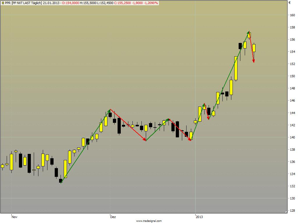 statt PPR hätte man auch die ING nehmen können: genau das gleiche, sofort wieder draußen!! Mir bleiben noch Klöckner und Henkel, die heute mit plusminus Null unterwegs waren. Mal sehen... Bisher läuft beimir 2013 nicht so dolle, jede Menge Stops und erst ein Wert im Target. Irgendwie hatte ich kein glückliches Händchen.