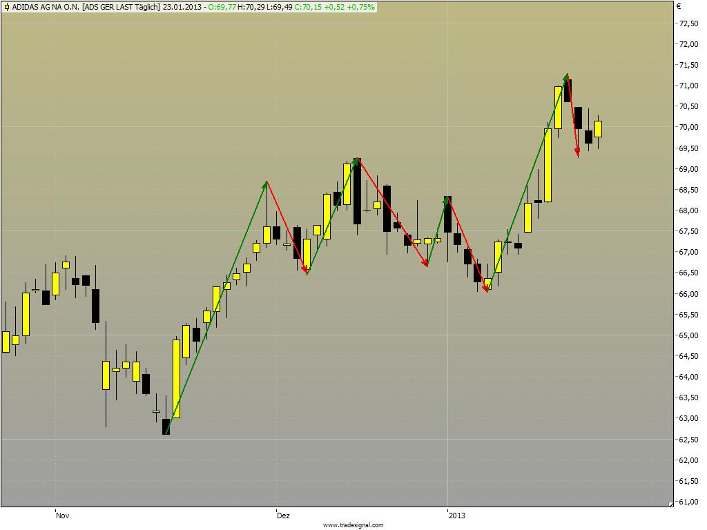 Adidas: ist nach einer ausgeprägten Seitwärtsphase über € 69,00, Tageshoch vom