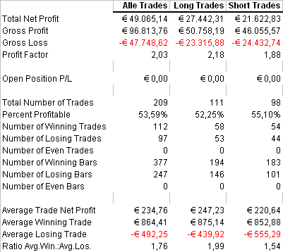 Die Shorttrades schneiden etwas schlechter ab, generell ist die Trefferquote mit 54% noch nicht so wie ich sie gerne hätte.