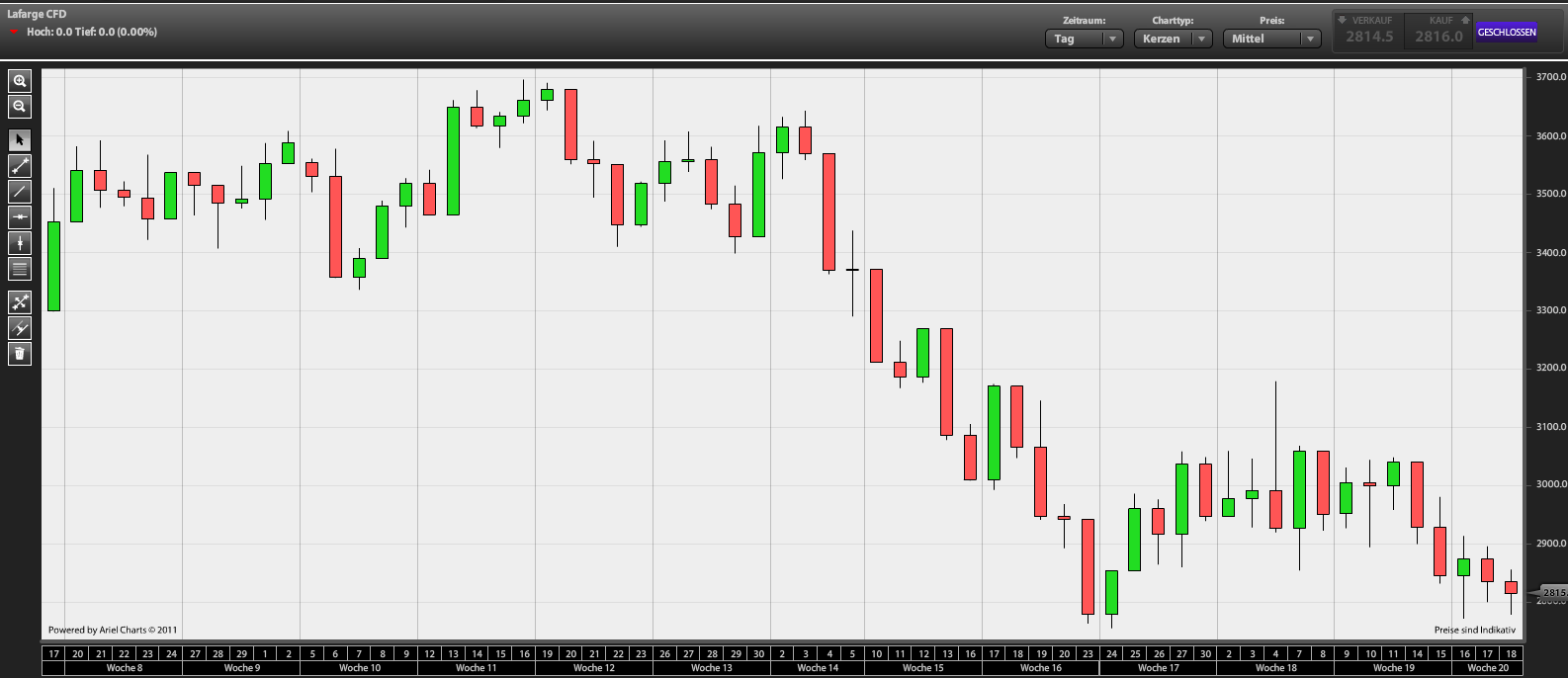 Hochtief wäre für mich persönlich ein absolutes No-Go, weil nicht mal ansatzweise ein Doppelboden oder gar Trendwende erkennbar wäre. Gegen so einen astreinen Abwärtstrend stemme ich mich lieber nicht.