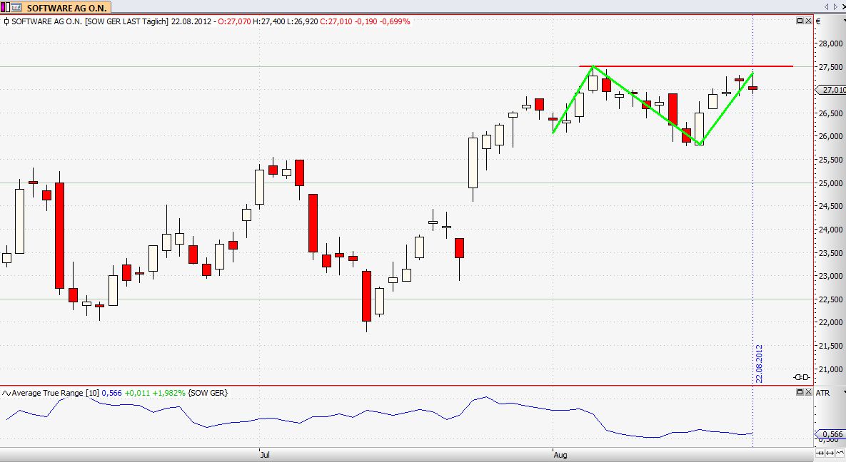 Der angedachte Longtrade wurde heute ja nicht ausgelöst, wir sind also noch short investiert.