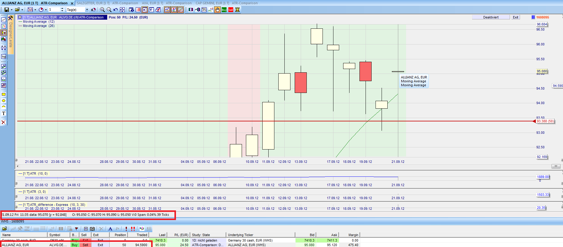 Heute hat Allianz mit einem Gap bei 95,05 € eröffnet und dann auch den ganzen Tag nicht unter 95 € gefallen. Meine Order ist aber um 9:02 Uhr zu 94,59 € ausgeführt worden. Siehe Screenshot