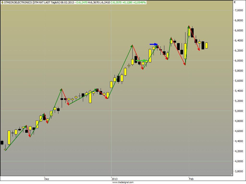 ATR bei Safran war 0,56 und bei STM 0,23. Ich weiß dass diese Werte von der Standard-ATR leicht abweichen, aber in beide Richtungen. D.h. über kurz oder lang sollte es eigentlich egal sein. Mein Idol was die Programmierung bei TradeSignal angeht meinte halt mal, der ATR wird dort falsch berechnet, und verschickte diese leicht korrigierte Formel die ich nun verwende.