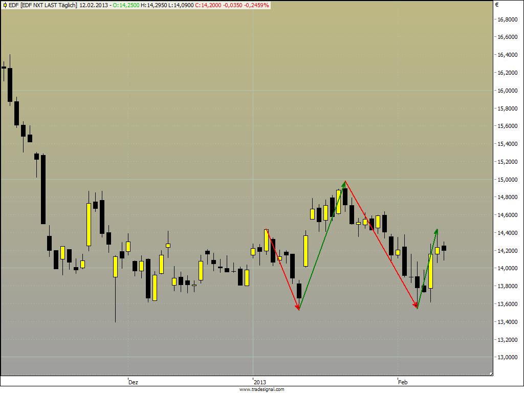Morgen wäre ich wieder flat, wenn der Zeitstopp bei Safran greift. Ich versuche mich morgen daher gleich an E.ON, EDF und Lafarge.Der Autor ist in den besprochenen Werten zumeist selbst investiert. Traden auf eigene Gefahr, Signale sind aktuell großteils experimentell zwecks Challenge "In 30 Tagen zur Trading Strategie".