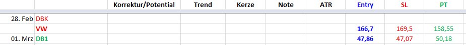 Wenigstens zieht Publicis angenehm an, morgen probier ich VW. Dt. Bank und Technip wären Alternativen. Peugeot hat eine massive Unterstützung um 5,6€. Und bei STM ist der Trigger schon ziemlich weit vom Tageshoch entfernt.Der Autor ist in den besprochenen Werten zumeist selbst investiert. Traden auf eigene Gefahr, Signale sind aktuell großteils experimentell zwecks Challenge "In 30 Tagen zur Trading Strategie".