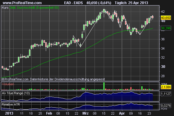 EADS (dürfte auch nicht mehr im Long-Trend sein, weit entfernt von schönen 5-Tage-Swings)