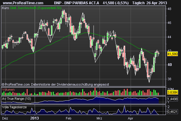 Adidas und BNP Paribas gefallen mir ganz gut. EADS nicht, da der Weg der zurückgeleget wurde vom Tief schon ziemlich lange dauert.Der Autor ist in den besprochenen Werten zumeist selbst investiert. Traden auf eigene Gefahr, Signale sind aktuell großteils experimentell zwecks Challenge "In 30 Tagen zur Trading Strategie".