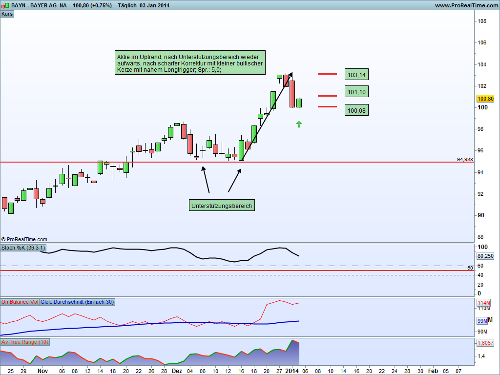 Bayer: verlief die letzten Wochen schön im Uptrend, hat nach Ausbildung