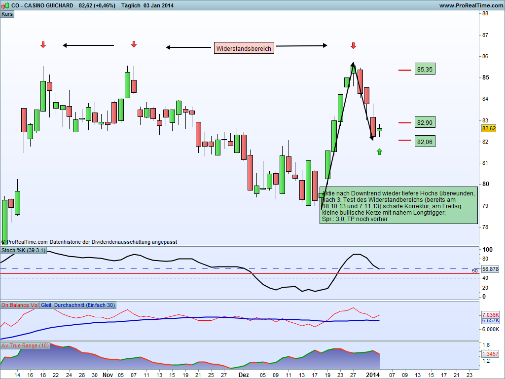 die Aktie verlief seit dem 22.11.13 schön im Downtrend