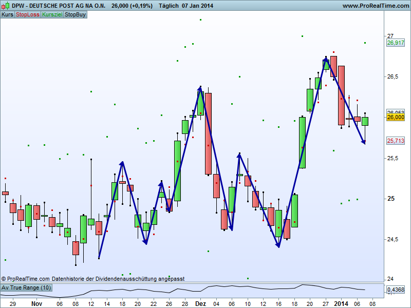 Dt. Post naher Trigger aber leider schon weit entfernt vom Tiefpunkt des Swings.
