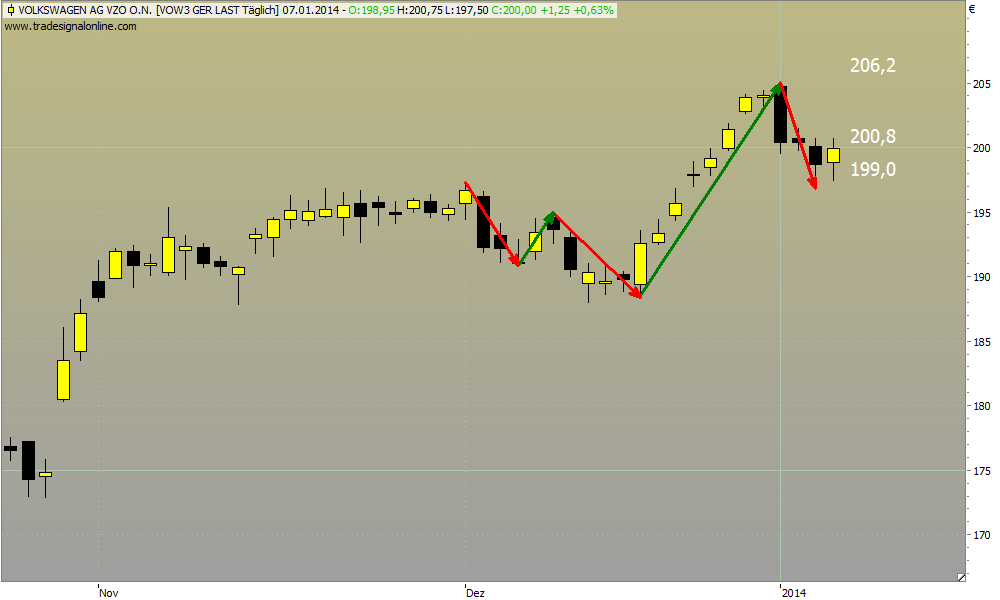 das letzte markante Swinghoch Anfang Dezember 2013 überwunden