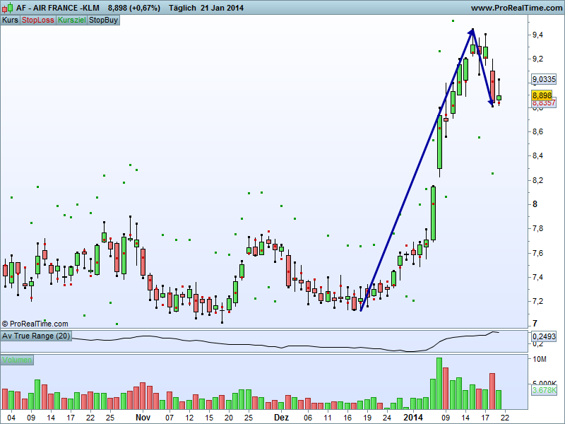 Air France langer Trigger, im Verhältnis zum Upswing nur eine kleine Korrektur
