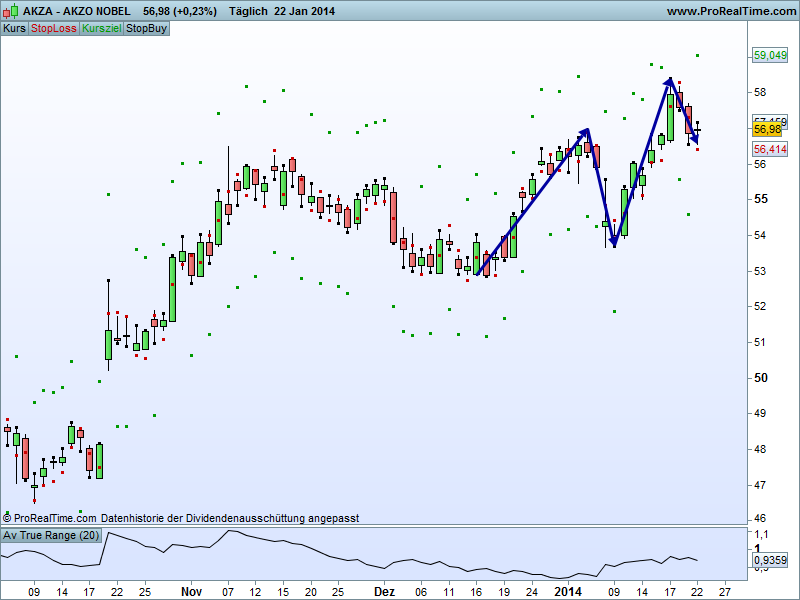 a) es besteht ein übergeordneter Aufwärtstrend