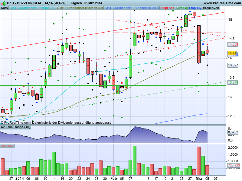 Ich werde mit dem Trade mal versuchen, die bisher genannte Ansätze zu vereinen, also bei +0,9 ATR den