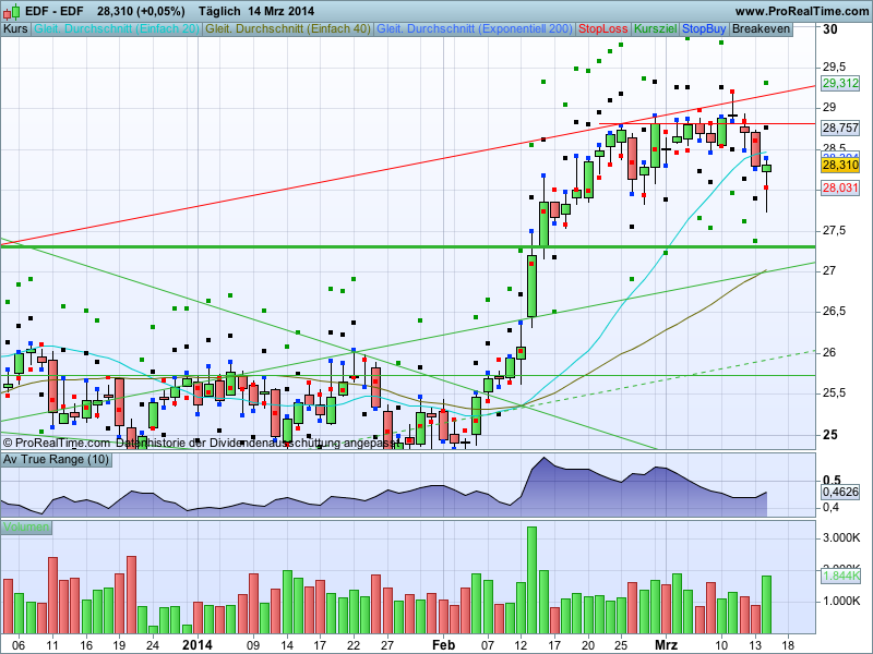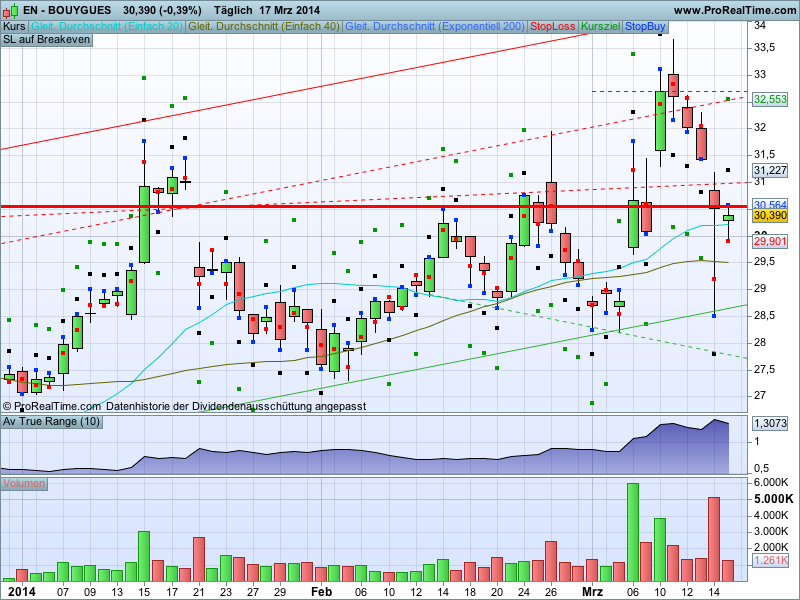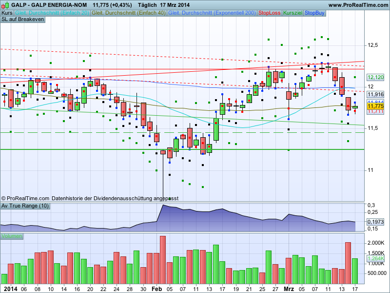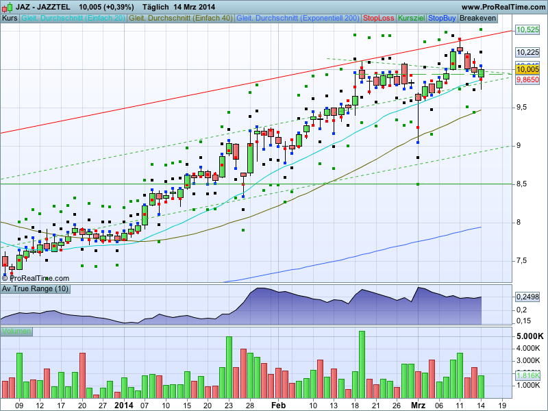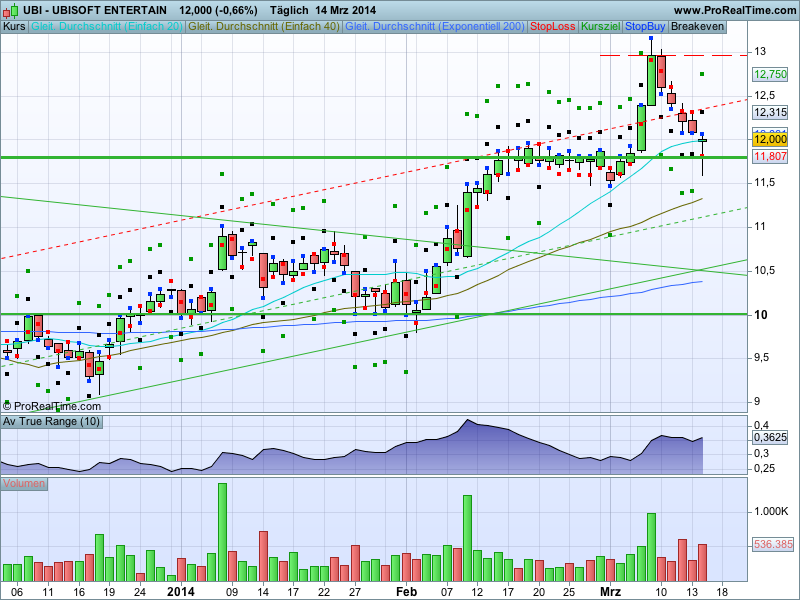 Ubisoft, Michelin und Jazztel im Ziel (mit verkürztem SL/TP 0,5/1,5 ATR). Fresenius ausgestoppt.