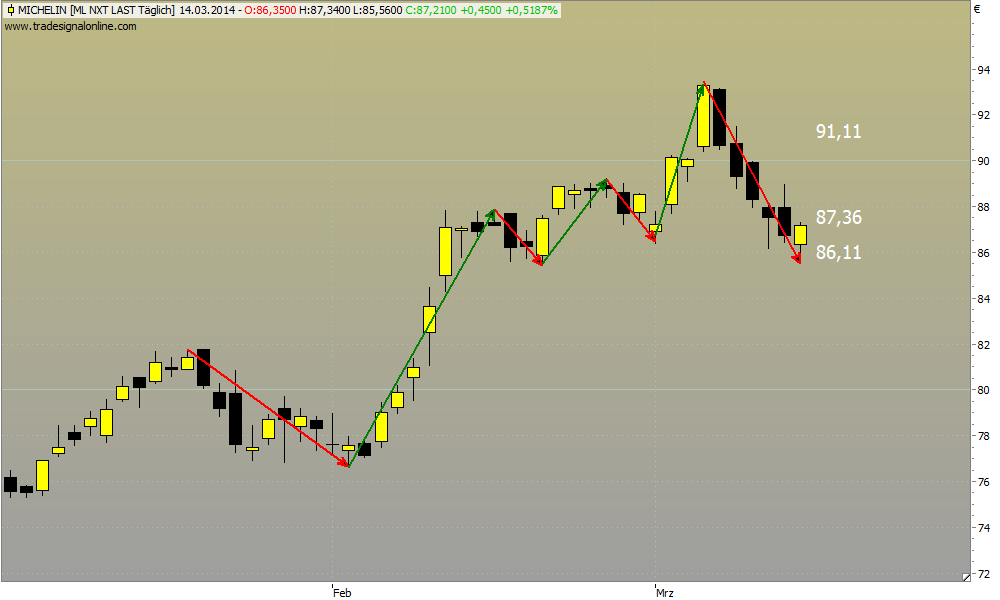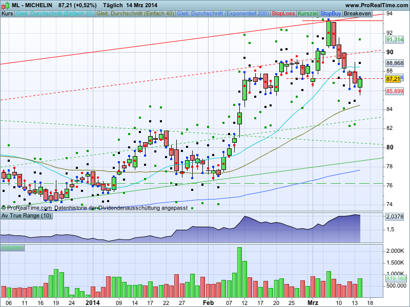 Michelin ist die einzige Wahl im CAC40 für Montag. Schwieriger fiel mir da schon die Entscheidung zwischen Continental und Heidelbergcement. Hätte eigentlich lieber zu HEI gegriffen, aber die haben Jahresabschluss am Mittwoch.