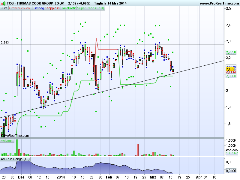 Als Long für Montag habe ich Thomas Cook anzubieten, aktuell schön im steigenden Dreieck, das ich traden werde.