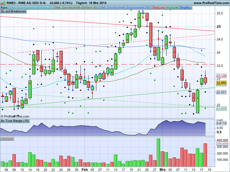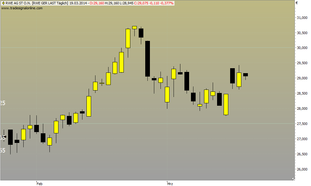 Jammerschade, vielleicht hätte ich dir KPN und Thomas Cook auch noch ausreden können wegen den langen Kerzenkörpern. Was RWE angeht...wieso haben wir hier komplett andere Charts? Im Anhang mein Xetra-Chart, kein Shortsignal weit und breit.
