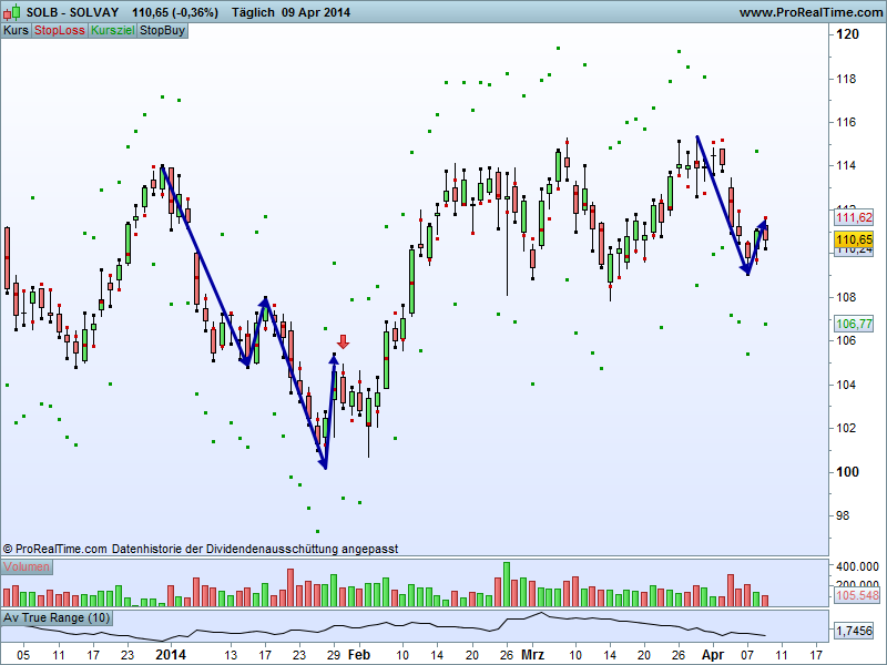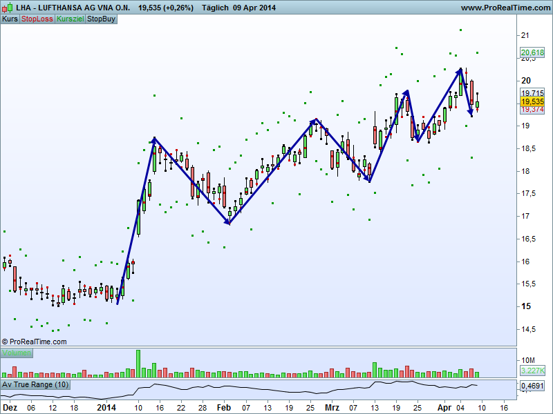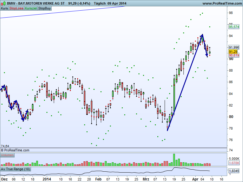 "Trading mit Aktien auf Tageschartbasis mit Hinblick auf das Abgreifen einer Kursschwankung in den nächsten 4 Tagen für Leute die nicht ständig auf den Bildschirm starren wollen oder können, oder eine Beimischung suchen".