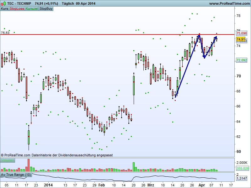 Das scannen hätte ich mir sparen können, gehe völlig d´accord mit Heidelbergcement und Technip :thumbup:Der Autor ist in den besprochenen Werten zumeist selbst investiert. Traden auf eigene Gefahr, Signale sind aktuell großteils experimentell zwecks Challenge "In 30 Tagen zur Trading Strategie".