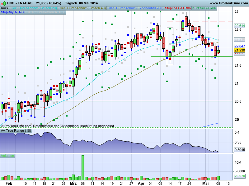 Enagas hat heute einen ordentlichen Satz gemacht. Unilever schlägt sich auch sehr ordentlich. Hargreaves, Berkeley und Delhaize pendeln um den Einstieg rum.