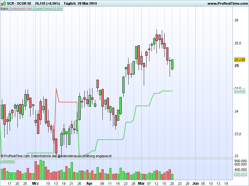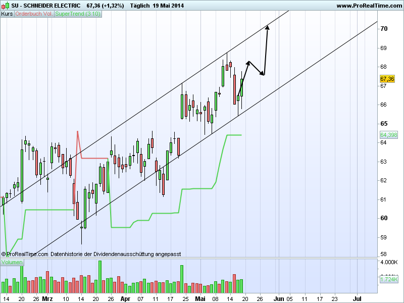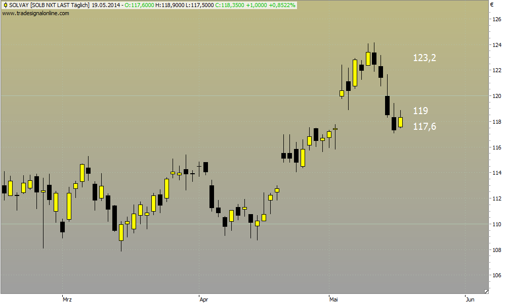 Schneider noch aktiv bei mir, hatte noch ein paar Cent Spielraum zum SL bei 65,65€. Siemens nicht ausgelöst. Bei E.ON hätte ich den richtigen Riecher gehabt, aber nicht die Cohones. Und auf die kommt es letztendlich an. Morgen versuche ich mich an Solvay.Der Autor ist in den besprochenen Werten zumeist selbst investiert. Traden auf eigene Gefahr, Signale sind aktuell großteils experimentell zwecks Challenge "In 30 Tagen zur Trading Strategie".