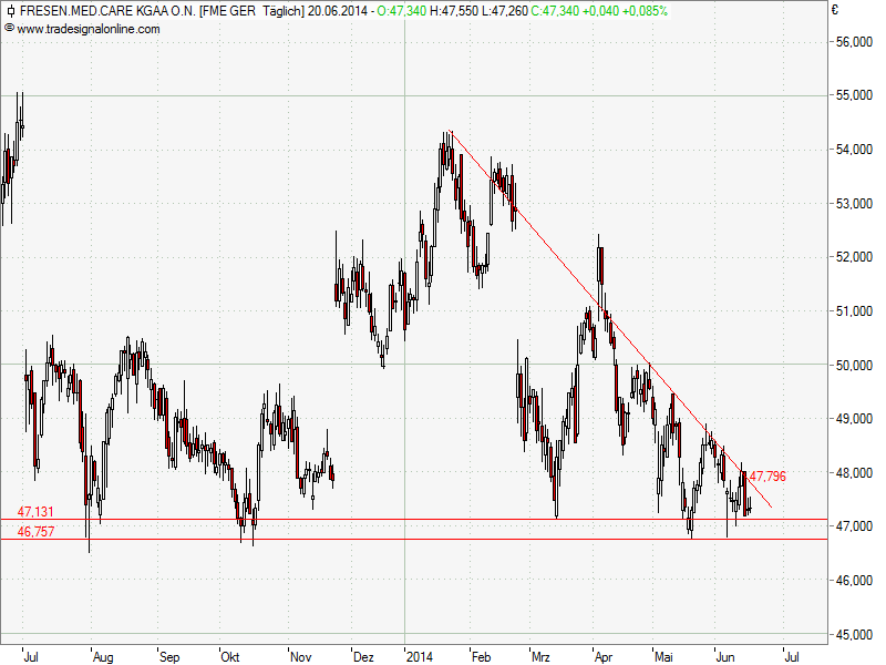 Fresenius finde ich spannend, beobachte ich auch schon eine Zeit lang, allerdings würde ich da doch warten, bis ein Tagesschlusskurs über der Trendlinie ist, bevor ich da einsteige.