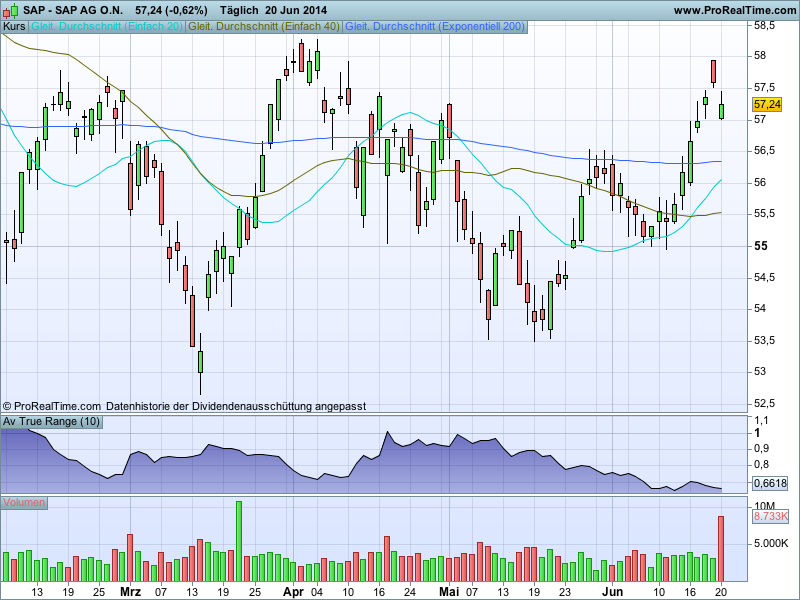 SAP? Bei mir im Chartprogramm eine bearishe Tageskerze.