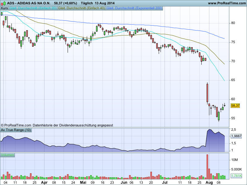 Richtig ist, dass sich der Kurs seit Mai 2014 in einer Range Box seitwärts bewegte.