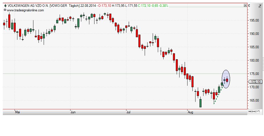 VW (wenn man ein Auge zudrückt)Der Autor ist in den besprochenen Werten zumeist selbst investiert. Traden auf eigene Gefahr, Signale sind aktuell großteils experimentell zwecks Challenge "In 30 Tagen zur Trading Strategie".