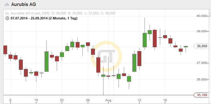 Nach 5 Handelstagen mit einer Aufwärtskorrektur erscheint am oberen Ende ein sauberes Engulfing Pattern, was auf eine Wiederaufnahme des bisherigen Abwärtstrends deuten könnte. Die Schlussnotierung am letzten Freitag liegt unterhalb des Schlusskurses vom Vortag und sieht daher bearish aus.