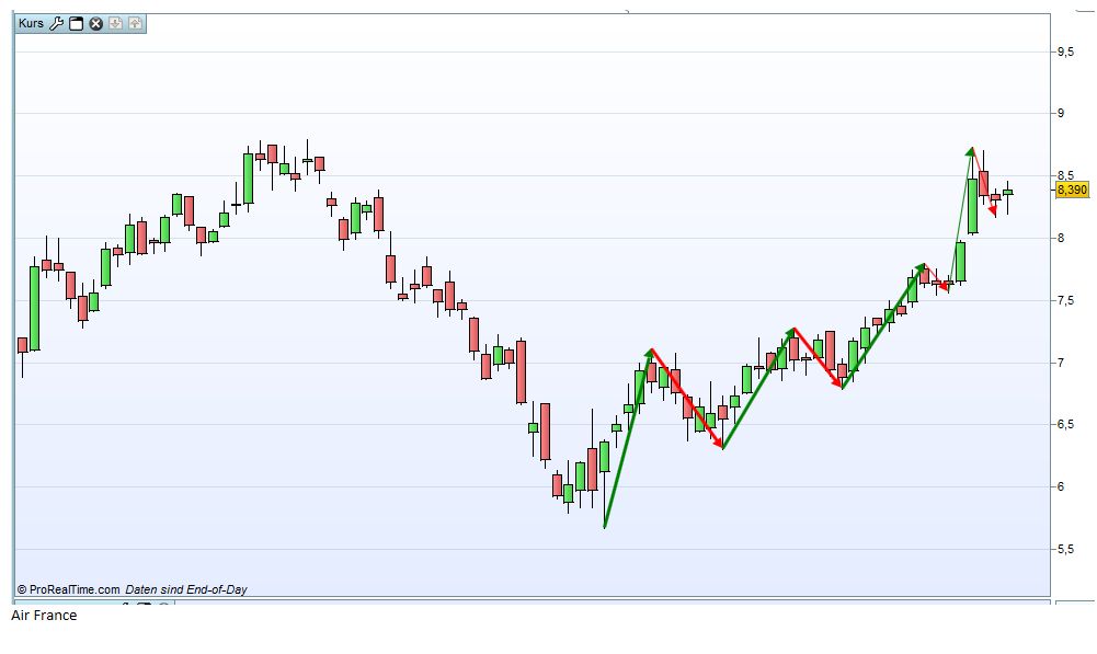 Adidas hat bei mir auch ne rote Kerze, von daher für mich kein Trade. Bei Air France ist das heutige Hoch höher als das gestrige, von daher für mich auch kein Trade. Bei Technip sehe ich ehrlich gesagt auch kein Setup.