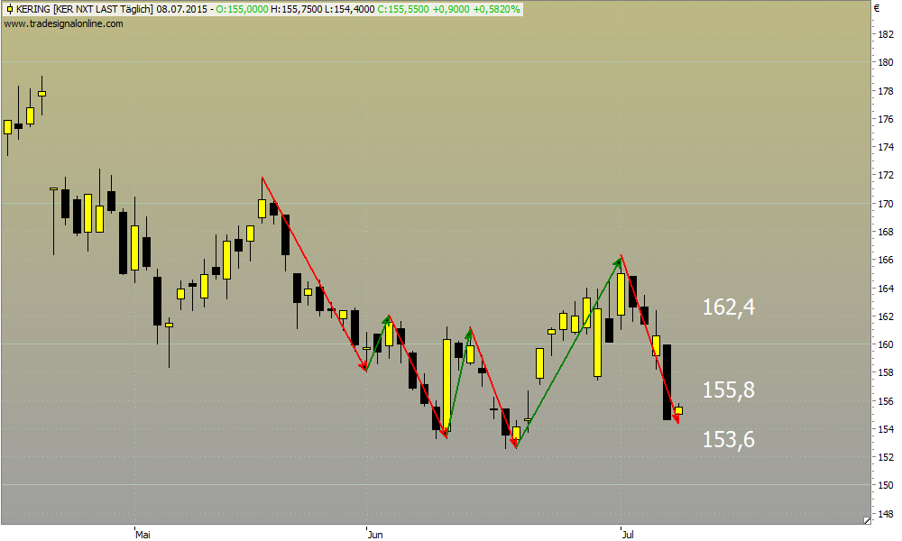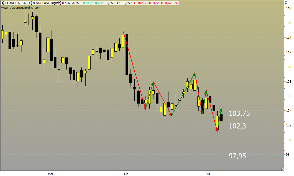 Wenn du jetzt noch ein wenig spielen möchtest, könntest du den Stop sogar leicht über das Hoch der heutigen Schlusskerze legen und dafür das Target noch in Richtung des Swingtiefs nach unten schieben, um die CRV zu erhalten. Aber das ist dann schon Kür und ist mit unseren ursprünglichen Regeln nicht mehr konform. Aber es wäre eine Idee.