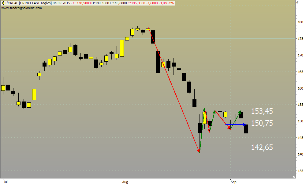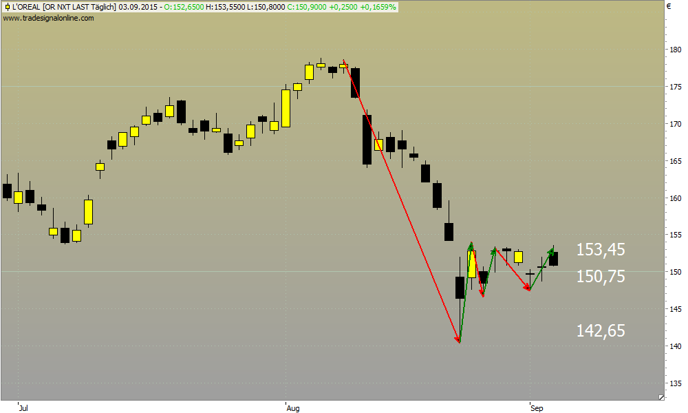 Ein paar Longsignale von Mittwoch sind gestern gut gestartet. Für heute fällt mir nur L´Oreal auf. Rackert sich an einer Bear Flag ab, das gestrige Tagestief liefert einen sehr frühen Einstieg dazu. Die konservative Variante dazu wäre es, auf einen Fall der 148€ zu warten. Finde das Setup mit dem Stopp am Widerstand aber ganz lässig eigentlich.