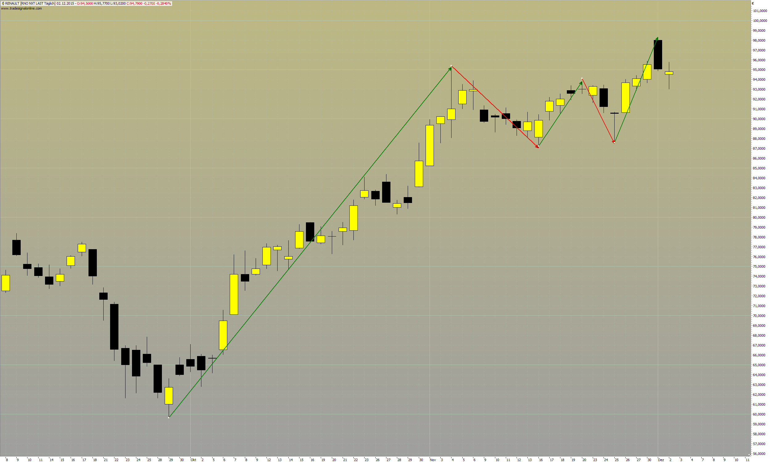 Bei dem Signal für Renault von gestern (02.12.) ist die Kerzenform ja beinahe schon ein Doji - also mal etwas übertrieben ausgedrückt