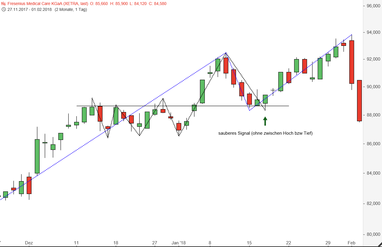 Vielen Dank für die Antwort. Das mit dem Upgap ist ein guter Hinweis. Aber das mit dem Doji sehe ich immer noch nicht. Beim Dax screene ich mit dem XETRA und beim CAC 40 mit dem Euronext Paris. Bei diesen Handelsplatz sind ja die Nachbörse nicht enthalten. Also habe ich nur die Kurse von 09:00-17:30. Da müsste ich ja gar nicht in den 15min Chart reingehen und die Nachbörse ausblenden, weil die ja auch im Tageschart gar nicht enthalten sind. Oder villeicht verstehe ich das Doji falsch. Ich betrachte ein Kerze als Doji wenn der Eröffnungskurs (09:00) und der Schlusskurs(17:30) beinahe gleich sind. Oder bin ich da komplett falsch?