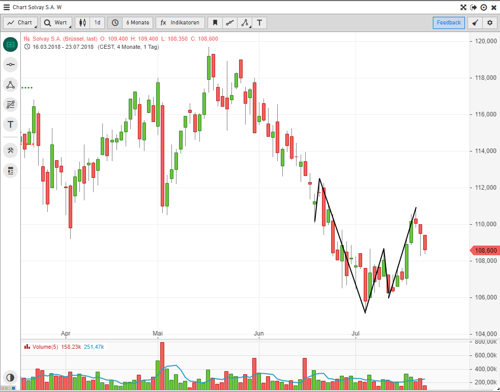 <p>wilkommen dabei dann. also aus meiner sicht spräche gegen bouygues, dass es nur ein doji ist, gerade wenn man die nachbörse rausnimmt. das siehst du bspw. im 15 min chart, da ist der letzte tick dann nur ein strich.<br />