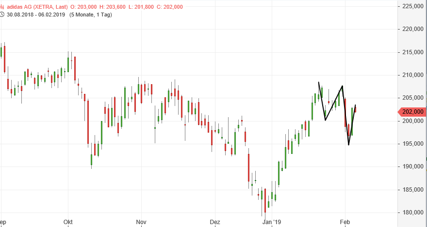 Bei Adidas interpretiere ich ein tieferes Tief und somit ist die Richtung gemäß Markttechnik aus meiner Sicht erstmal o.k.:
