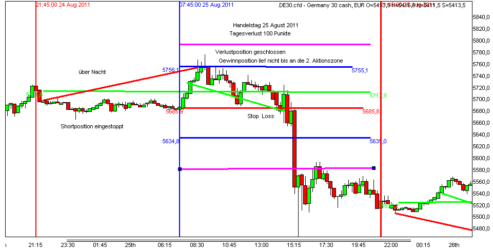 Handelstag 25 August 2011 / seit Monaten der erste Verlusttag mit 100 Punkten