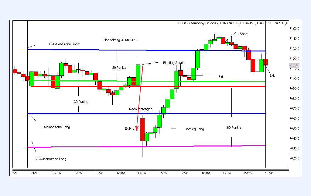 1. Morgens bis 11h Glattstellung der Verlustposition an einer der ersten Aktionszonen. Gewinnposition bis zu