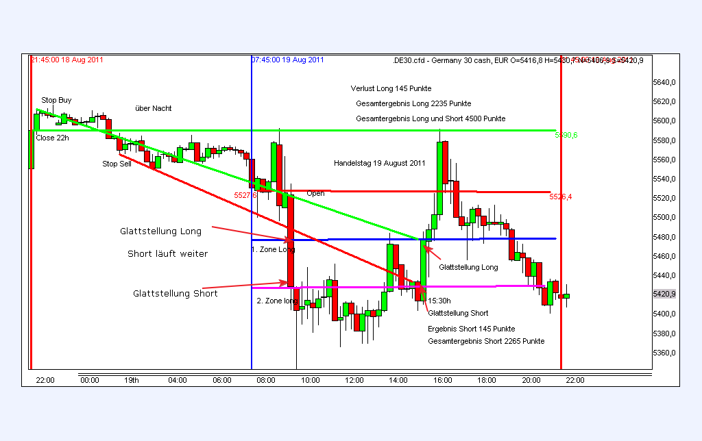 Marktphase mit ca. 40 Punkten Verlust zu schliessen oder die Gesamtposition auf den Folgetag zu verlagern.