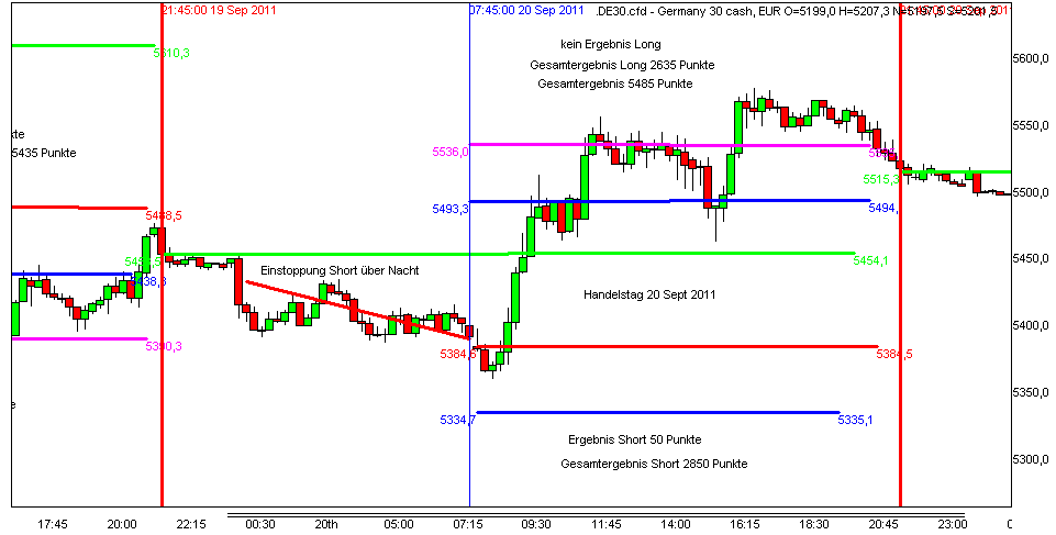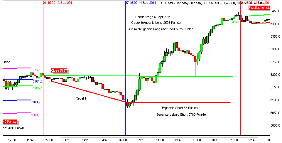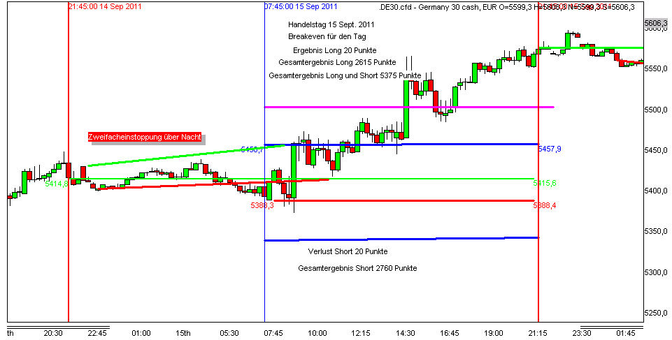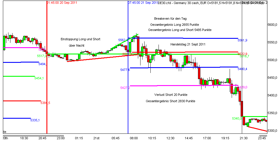 Handelstag 21 Sept. Breakeven nach Regel 5.2 ohne Trendtag.